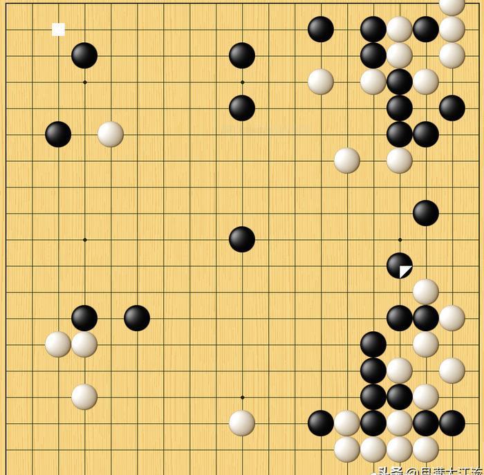 白棋抢先占据角部实地,然后在黑阵中撒豆成兵,柯洁要以自己最擅长的腾挪治孤来逼迫黑棋与自己一决大龙生死。