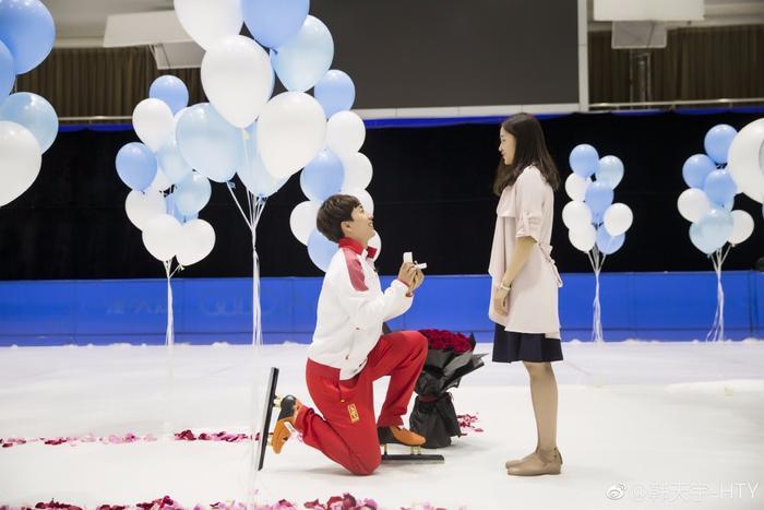 韩天宇用一枚钻戒,在滑冰场向刘秋宏求婚成功!
