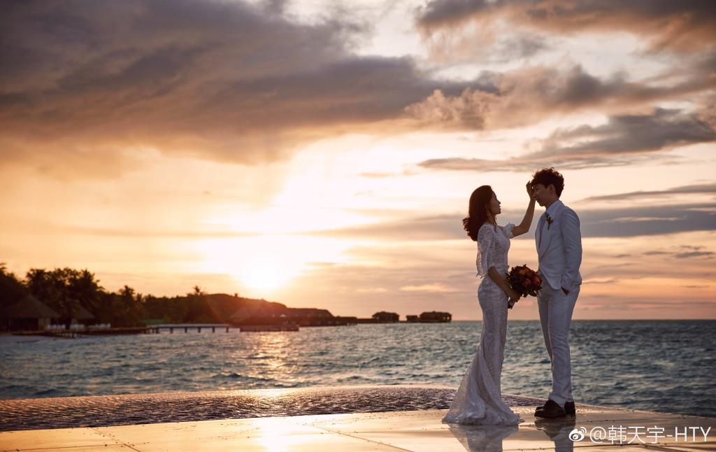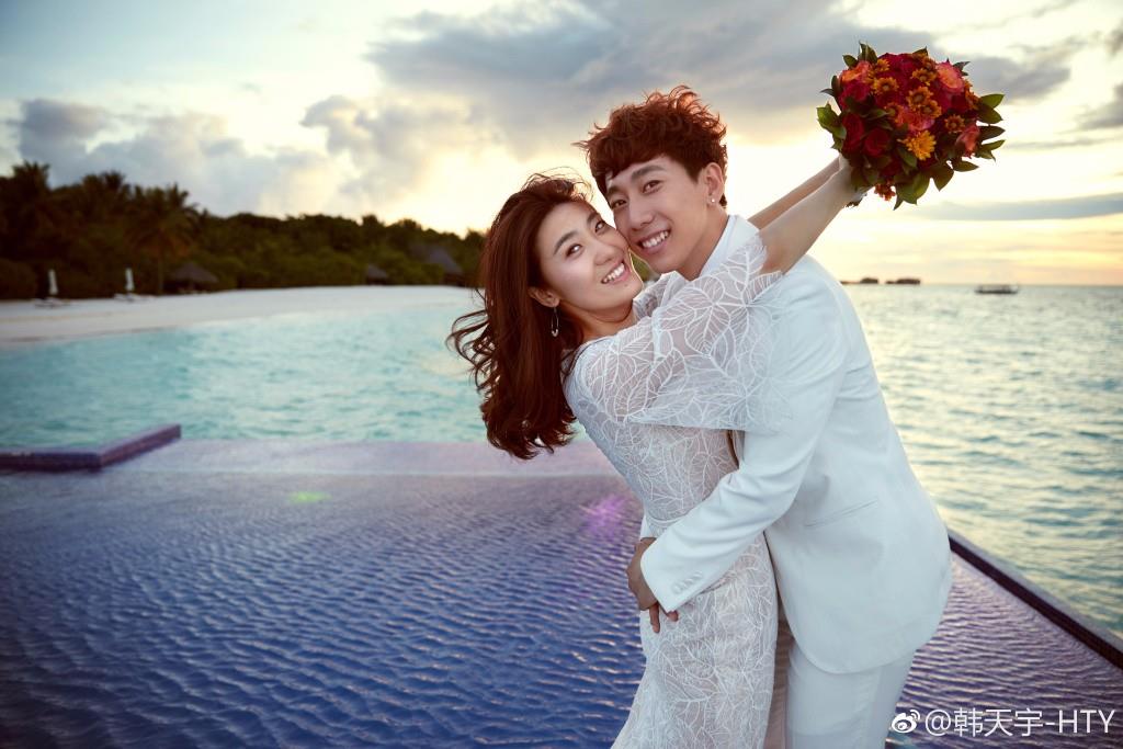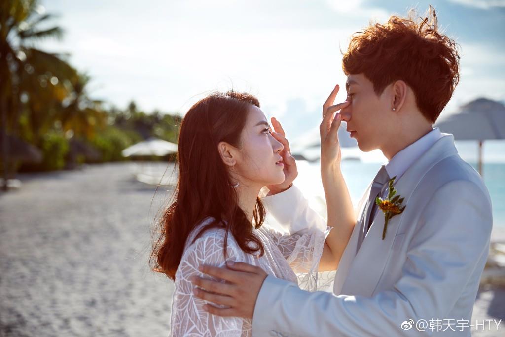 今日,短道小王子韩天宇与同为世界冠军的刘秋宏举行婚礼。
