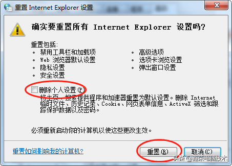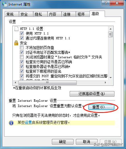 如果以上方法不能解决,还可以将浏览器属性设置重置,具体操作如下:
