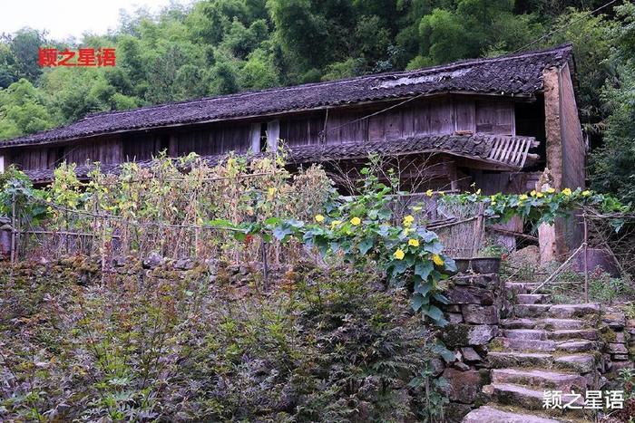 仅有一排木结构土墙民房保存完整,篱笆围墙,柴扉虚掩,似乎有人居住,旁边有些房屋已经倾废倒塌。