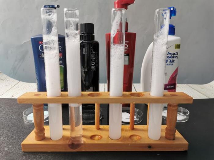 泡沫水清澈度:将料体和水摇晃均匀,一是看起泡量和泡沫状态,二是看水质浑浊度,水越清澈,说明添加的化学成分越少。