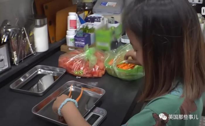 她每天都会亲自给两只猪准备萝卜皮、黄瓜条之类的食物给猪猪当食物。