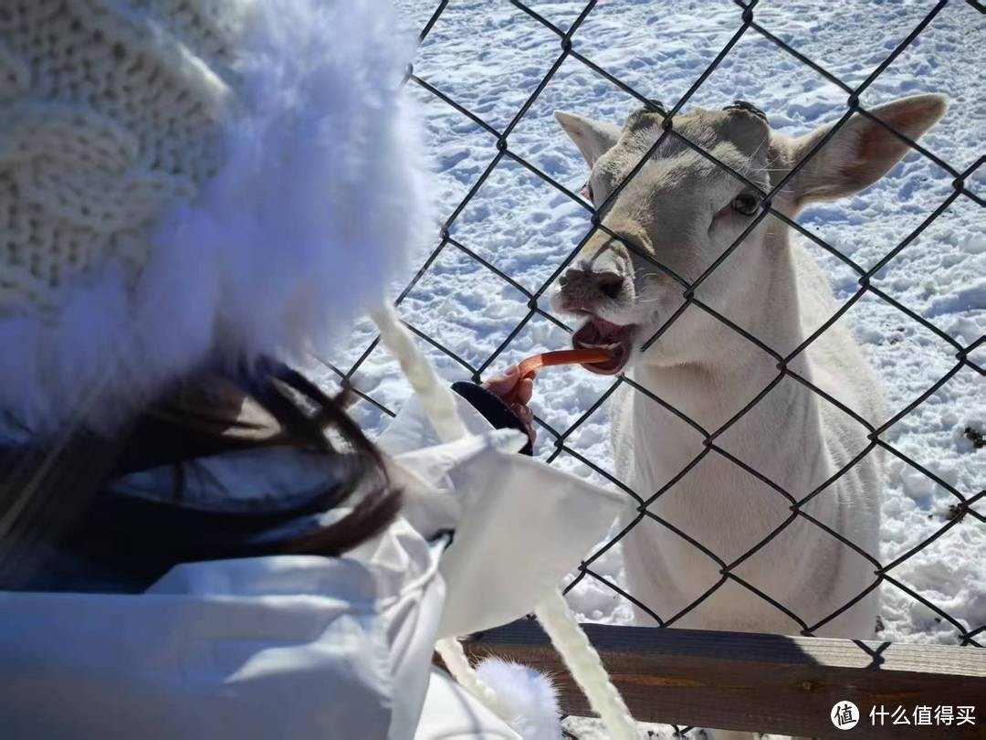在万达度假区的旁边,有一片鹿舍。冬季这里有驯鹿、狍子、卡皮把拉、企鹅、雪狐等各种动物,小朋友在这里玩得很兴奋。
