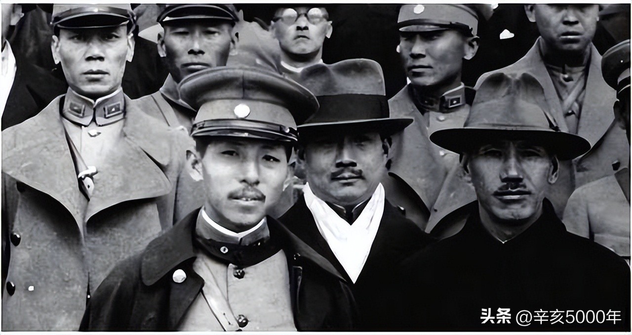 蒋介石、张学良和东北军将领合影