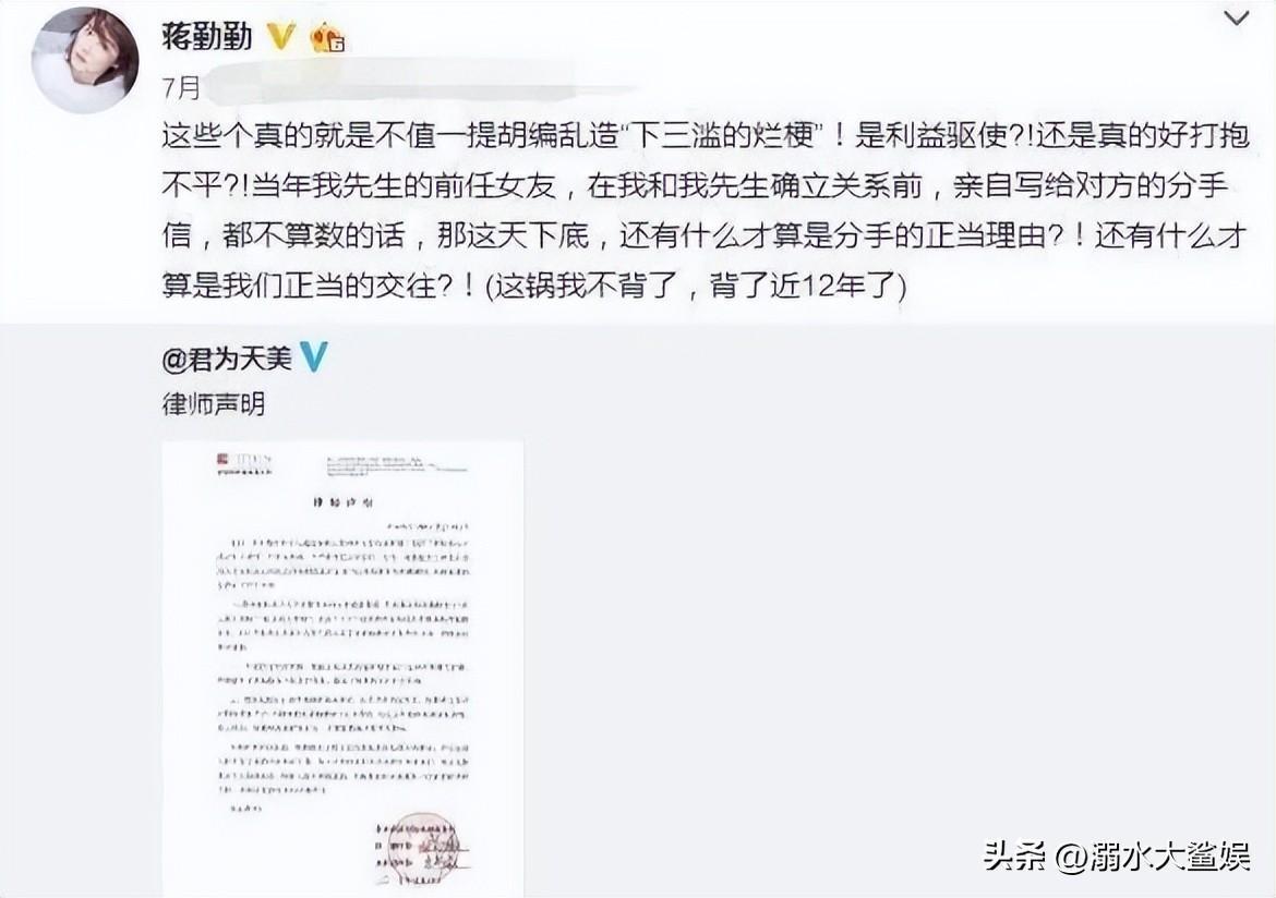 可当吴越的名字再次被提及时,蒋勤勤崩溃了,并反手打出一张律师函鸣不平:“我当初和陈建斌在一起的时候,他已经明确告知我和吴越分手了,这个锅我已经背了12年,现在我不背了。”