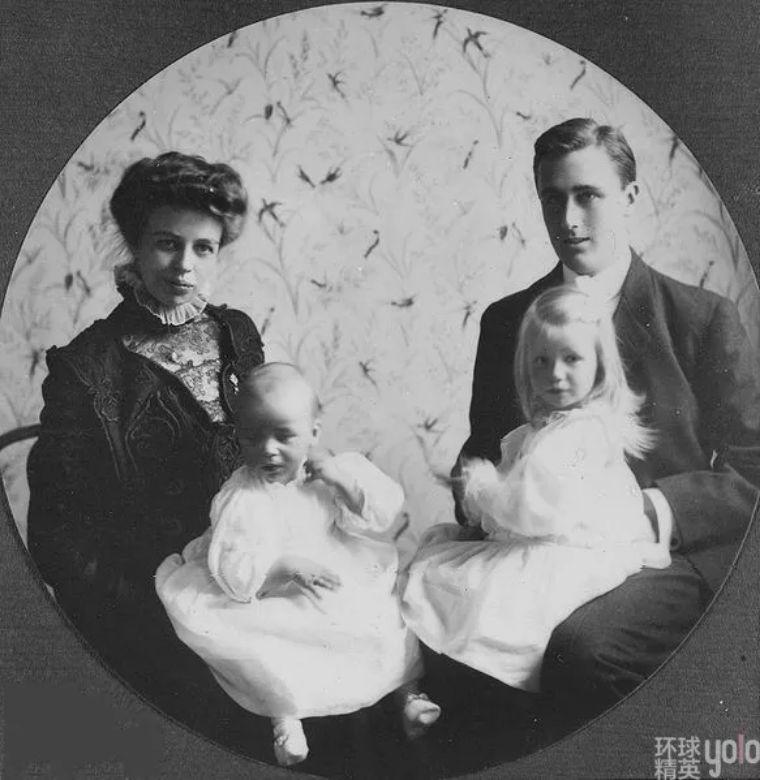 1908年,富兰克林·罗斯福和妻子安娜·埃莉诺·罗斯福及两个孩子