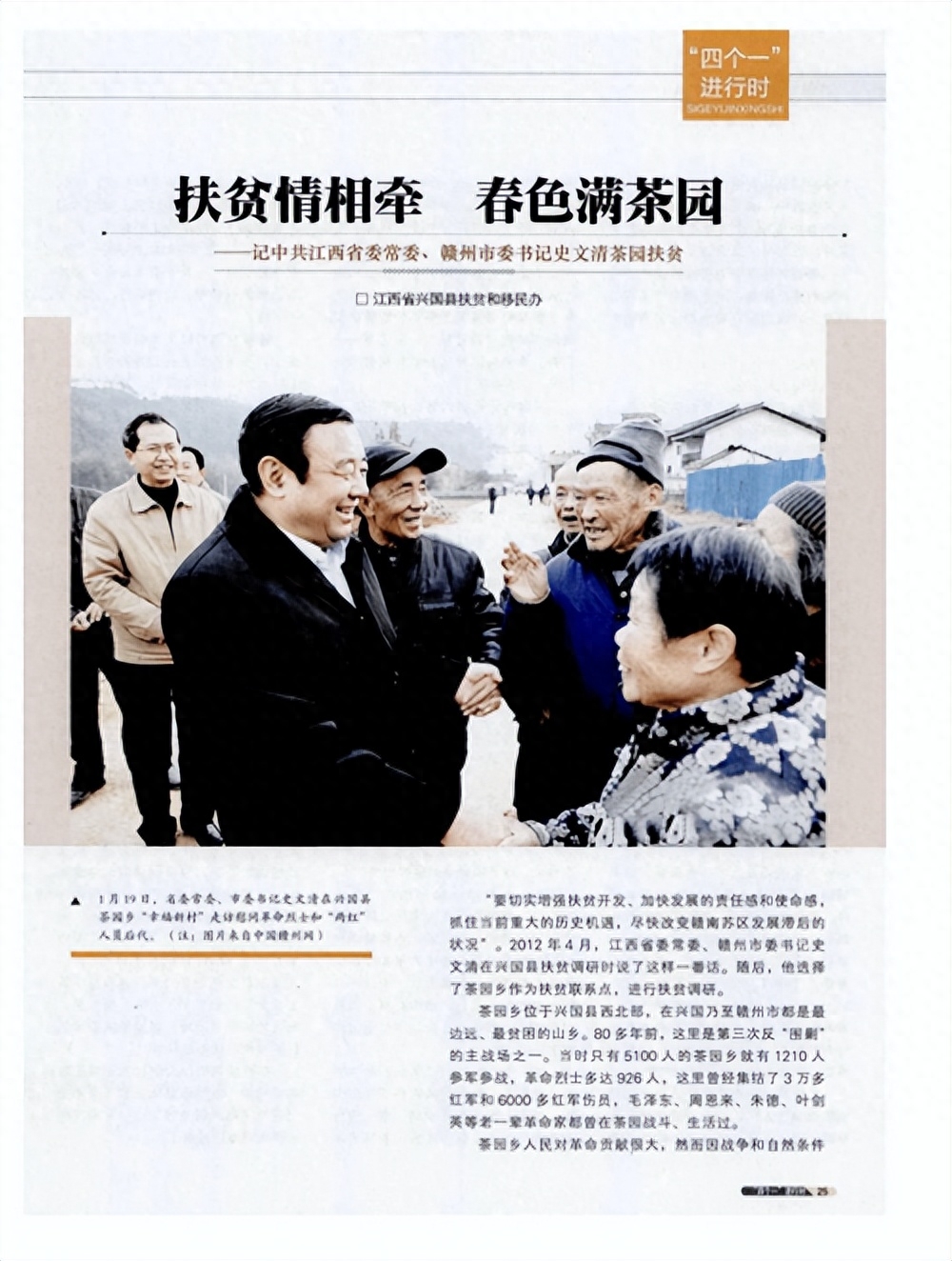 史文清站在人群中,拉着一位老人的手亲切地与他交谈,他声情并茂地说:“虽然我要离开这里了,但是在我心里,自己永远是个江西老表”。