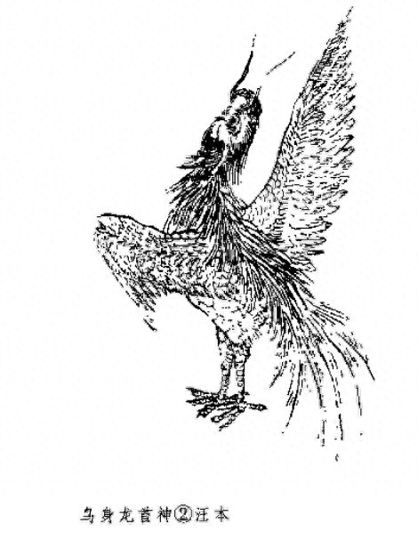 【解说】招摇山至箕尾共十出的山神,名鹊神,其状为鸟身龙首就所见之古图,招摇山的山砷萬神有两种形状:一,龙首人面鸟身;二,龙首鸟身,,名鹊神。