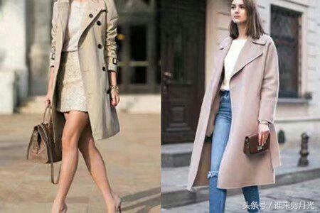 如果在秋冬季节,天气变得有点凉,这个时候面试可以选择百搭时尚的大衣。风衣的衣服可以选择一些比较柔和的颜色,像白色、米白或者藕粉色等等。图一是米色的中长款风衣,里面搭配套装裙子,看起来很简洁很干练的感觉。而图二同样是米色大衣,里面搭配白色针织衫,下身搭配蓝色牛仔裤,看起来也是很知性大方。