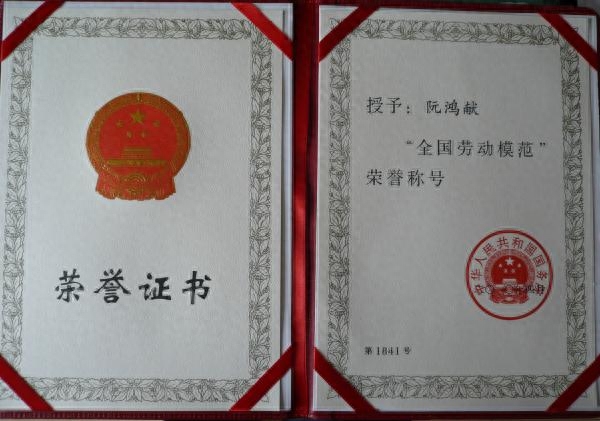 全国劳动模范荣誉称号证书