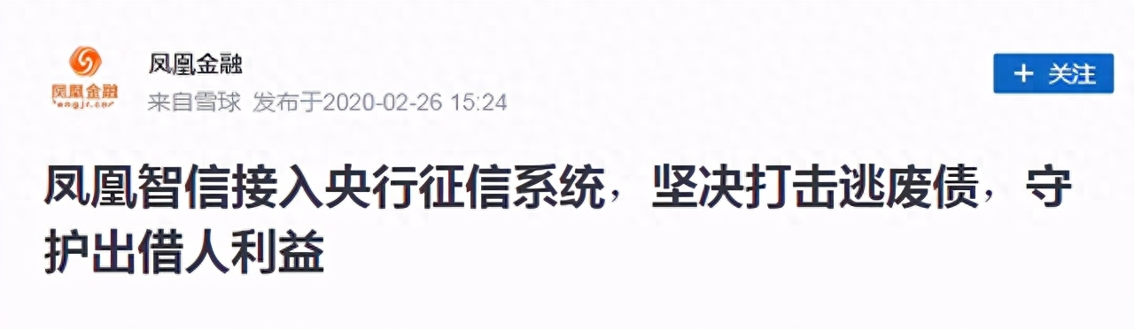 凤凰金融的某平台号也公告凤凰智信接入央行征信系统,