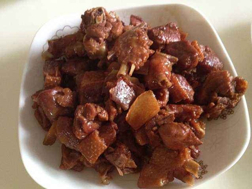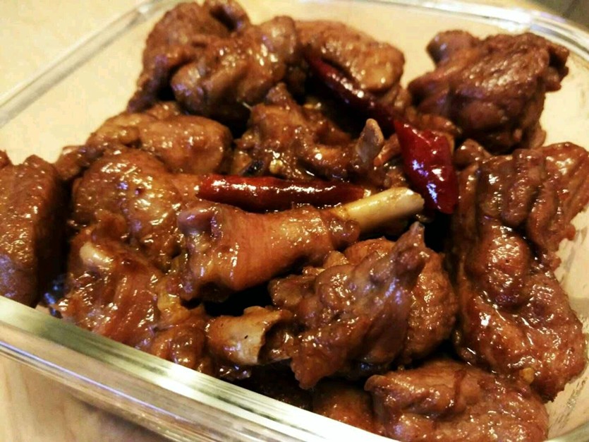 前两天在超市看到鸭腿肉还可以,就买了两个。想试着再做一次,以前做过家人评价一般。既然在超市买的,顺便就让他们给剁成小块儿,回来直接清洗腌制省事了。现在鸭子应该是人工规模养殖吧!我看鸭皮下有厚厚的油脂干脆把皮也去掉了,基本没几块带皮了的。先放清水洗一下,然后再用热水仔细清洗,之后冷水下鸭腿肉焯水。强调一下,鸭肉还是比较柴的,不容易熟,这时就需要上煮肉神器——高压锅,先在炒锅中把鸭腿肉炒好,盛到高压锅中炖15分钟后,再盛到炒锅中大火收汁。有点小麻烦!为这口美食还是值得的哦!