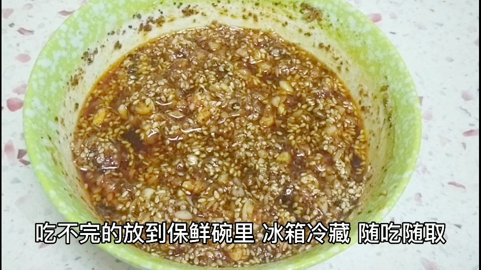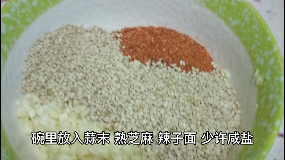 黑芝麻放进去视觉效果不太好,再放入安集海辣子面,怎么吃都不上火。锅里面倒入油,油热以后浇入辣子面,油多与少根据个人喜好,搅拌一下,好香的蒜蓉辣子酱,你可以放到保鲜盒里存放好几周,
