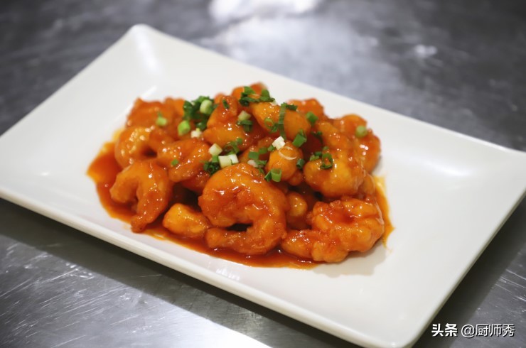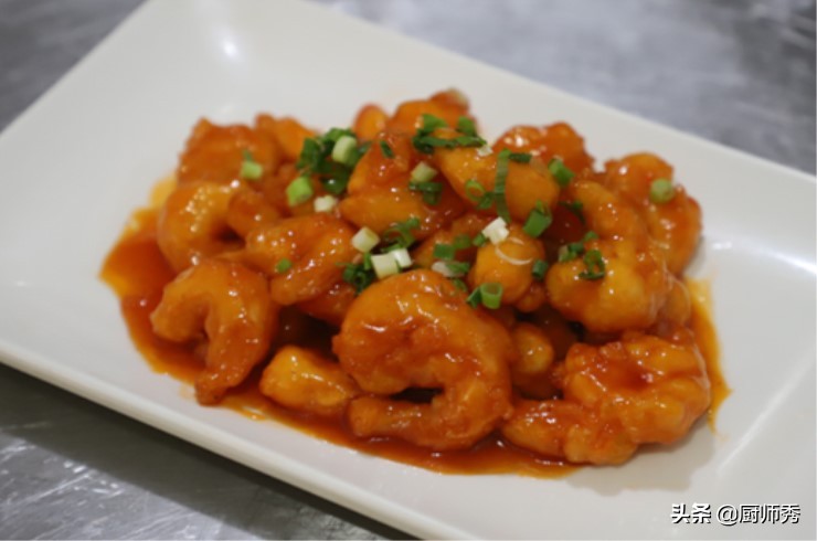 虾仁、白糖、 白醋、番茄酱、橙汁