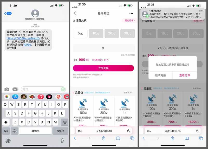 ②积分兑换礼品路径:中国移动积分商城