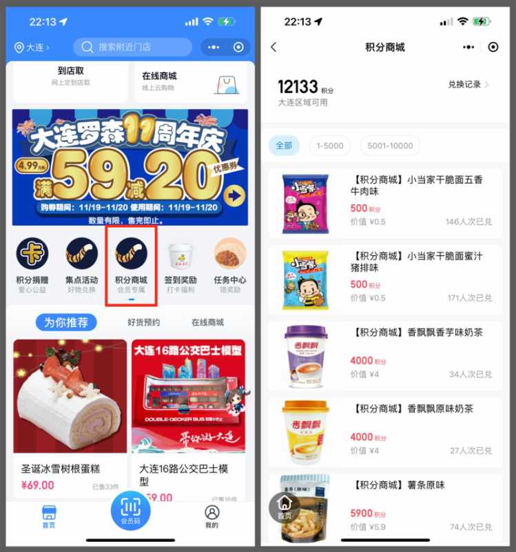 查询入口:罗森点点小程序→积分商城