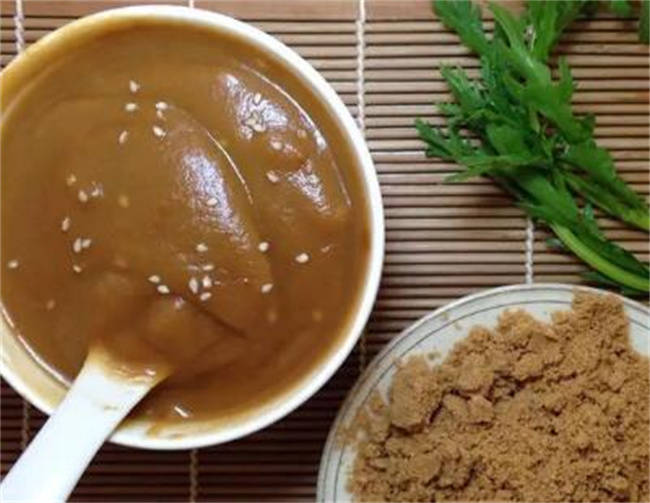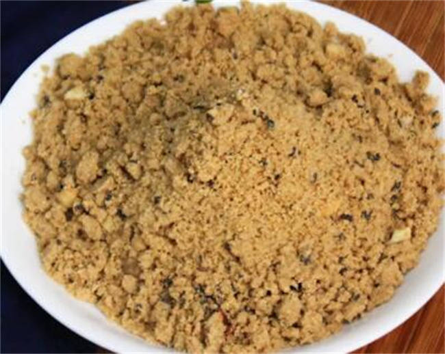 面炒至微微,发黄变色闻到有面香味,然后把花生碎和芝麻倒进去继续翻炒,翻炒到面粉焦黄色,然后把白糖放进去继续翻炒几下,白糖翻炒均匀之后把火关上,如果面里面有小疙瘩的话,就把锅晾凉,然后用铲子把小疙瘩搅碎,也可以用筛子过一下,把大的疙瘩过滤出来单独碾碎,一定要完全晾凉以后再装入密封罐里。