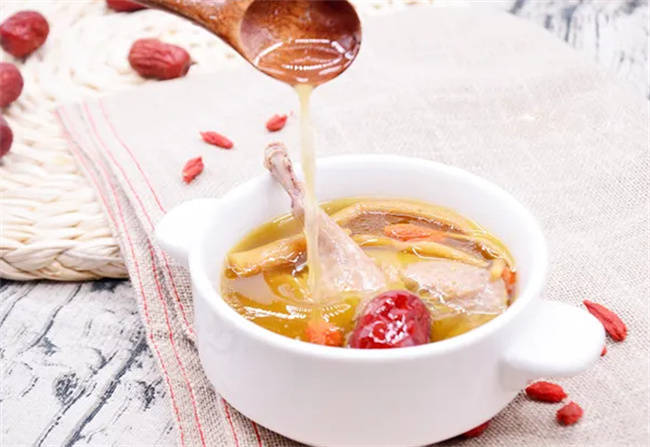 红枣枸杞鸽子汤。准备一只乳鸽,5个红枣,适量枸杞和姜片。把乳鸽洗干净,去除掉里面的内脏。把鸽子剁开之后,冷水放在锅里面放上几片姜,大火烧开煮2~3分钟。关火捞出割肉放在温水里面冲洗一下,然后把肉放到炖盅里面,加入适量清水和红枣。盖上盖子放在蒸箱里面隔水蒸。大火蒸半个小时左右,再转成中小火,蒸半个小时,出锅之前加入枸杞和食盐再蒸几分钟即可。
