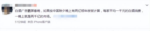 对于“白酒扎堆、霸屏春晚”情况的出现,市场上有观点认为,白酒企业正成为互联网企业和家电企业之后的春晚新“金主”,而且已经开始了一场“内卷”,这又是为什么呢?
