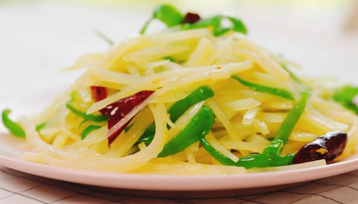 酸辣土豆丝是一道色香味俱全的汉族菜式。此菜是老百姓餐桌上最常见的家常菜。