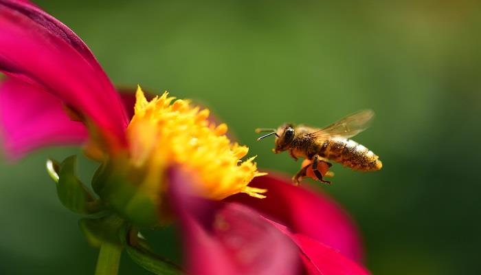 蜜蜂是最勤劳的小动物。它们采蜜又授粉,使不少农作物增加产量。