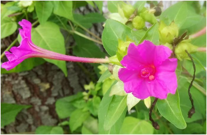 这个胭脂花学名叫紫茉莉,在民间有很多个名字:指甲花是最常用叫法,因为花朵是夜间开放,所以也叫夜来香,据说胭脂花超过10多个别名,不知道朋友们那边叫什么名字,可以评论区打出来。